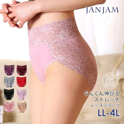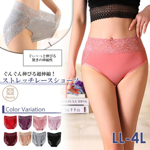 大きいサイズ レディース インナー ショーツ 下着 レース切り替え 花柄レース ストレッチ コットン カラバリ豊富 紫 黒 赤 肌色 LL 3L 4L 13号 15号 17号 ec-all-in0081ぐんぐん伸びて優しくフィット。